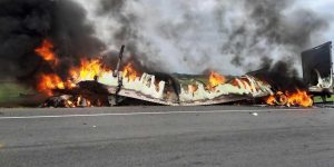 En las imágenes se logra ver el vehículo de pasajeros calcinado, el trailer quedó severamente dañado por el fuego. El accidente involucró a dos familias, hasta el momento no se sabe cuántos pasajeros viajaban en en minibús que había sido alquilado, donde murieron 21 personas.