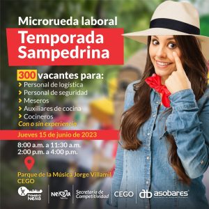 La Alcaldía de Neiva en articulación con Asobares, ha anunciado la disponibilidad de 300 vacantes laborales para la próxima temporada sampedrina. Esta iniciativa tiene como objetivo generar empleo y oportunidades durante las festividades sampedrinas y brindar apoyo al gremio del entretenimiento, bares y gastrobares, así como a los eventos que se llevarán a cabo en la ciudad.