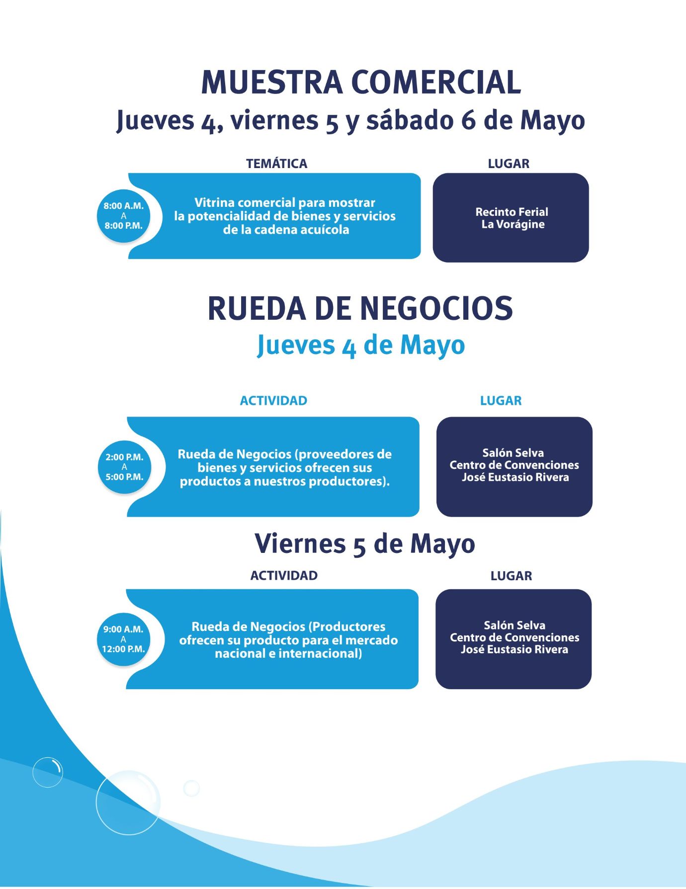 Durante los días 4, 5 y 6 de mayo, los propios y visitantes encontrarán en la feria una agenda académica, vitrina comercial de productos, bienes, servicios, muestra gastronómica y cultural, concursos y ruedas de negocios.