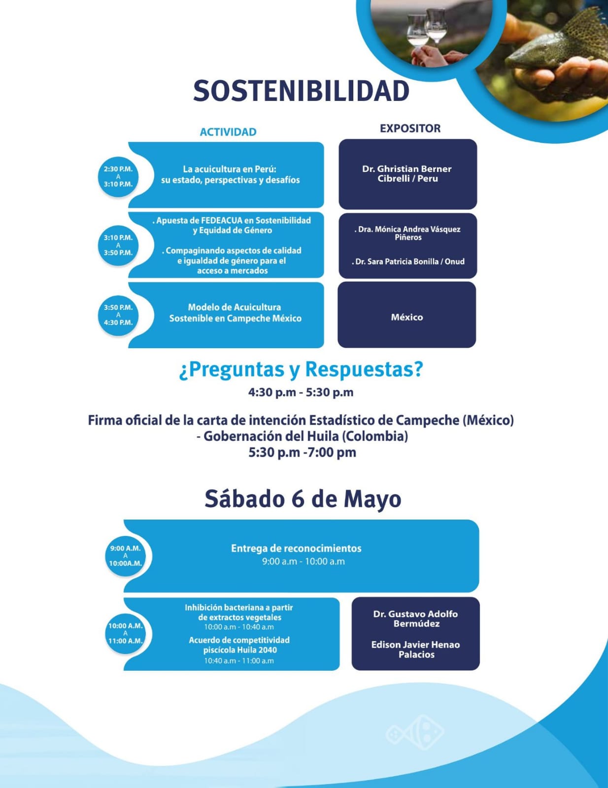 “El resultado de esto ha sido que hoy tenemos delegaciones internacionales que nos están acompañando y vienen a compartir con nosotros estos tres días, resultado también de esto es que en el desarrollo de esta segunda versión de la feria internacional acuícola hemos tenido una muy buena participación, vamos a tener una excelente oferta académica quizás con los avances más importantes de este sector, vamos a tener una muestra empresarial, ruedas de negocios, feria gastronómica, país invitado Perú” dijo Dilberto Trujillo, Secretario de Agricultura del Huila.