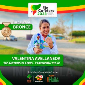 6 medallas de Bronce con: José Luis Torres Bermeo y Angie Tatiana Aya Cardozo en Boccia, Valentina Avellaneda Molina en Para-Atletismo 200 metros. Juan José Jiménez Sánchez en Impulsión de Bala, Elkin Mauricio Salas Losada en lanzamiento de Jabalina y Stefanía Bobadilla en impulsión de bala.
