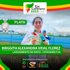 3 medallas de Plata con: Stefanía Bobadilla Medina en lanzamiento de disco y Lanzamiento de Jabalina, además de Briggith Alexandra Vidal Flórez en Lanzamiento de disco.