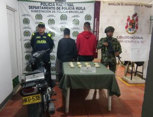 El operativo se dio en la vereda El Cedro, del centro poblado de Bruselas, donde los hombres se transportaban en una motocicleta con 1.700 gramos de esta sustancia.