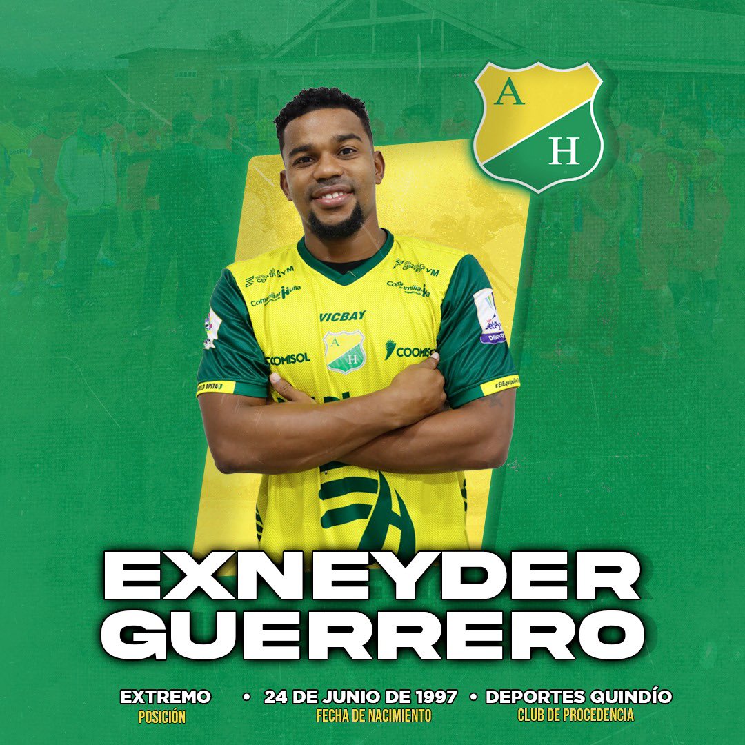 Atlético Huila quiere alejarse del descenso para ello buscará mantenerse en primera categoría y no quiere dar ventajas, ante las lesiones de varios de sus jugadores en zona de volantes y ataque anunció la llegada del extremo Exneyder Guerrero Quintana de 26 años de edad, quién llega proveniente del Deportes Quindío, debutó como profesional con Universitario de Popayán en 2014, jugó en Quindío del 2016 al 2020, Santa Fe 2021 y regresó al Quindio hasta el año anterior.