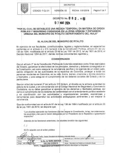 Decretan medidas por la seguridad en Pitalito