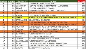 El Hospital de Garzón, según el ranking, se ubicó en la séptima posición a nivel de las 40 ESEs públicas del departamento del Huila.
