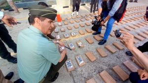 “Los narcotraficantes pretendían transportar 917 paquetes de cocaína de un kilo de manera oculta en una carga de cacao. No obstante, luego del proceso de perfilamiento desarrollado por los uniformados se determinó el empleo de un scanner que develó la carga contaminada”, informó la Policía Antinarcóticos.