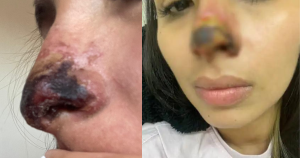 Joven casi pierde la nariz por una mala aplicación de ácido hialurónico