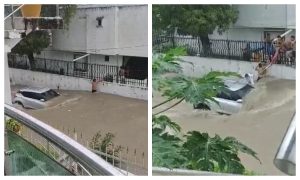Jóvenes rescatan a una pareja arrastrada en su carro por un arroyo en Cartagena