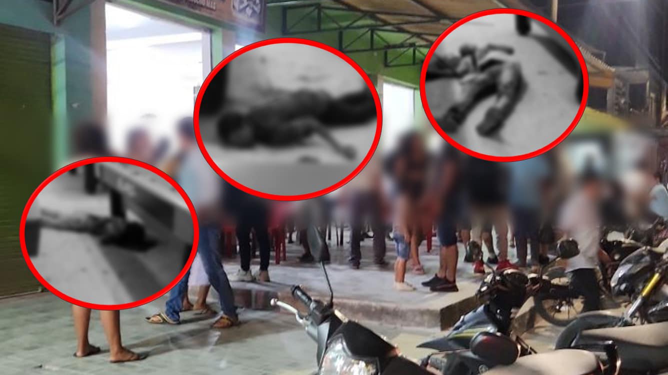 De acuerdo con imágenes obtenidas por Neiva Estéreo, son tres cuerpos los que se encuentran en el piso sobre lagos hemáticos, ya sin signos vitales por los impactos de bala que recibieron.