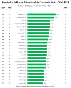 El presidente de la Fundación Bolívar Davivienda, Fernando Cortés, señaló que, aunque ciudades como Bogotá encabezan la medición, ninguna supera los seis puntos sobre diez, lo que muestra un margen de mejora generalizado. En la misma línea, la rectora de la Universidad del Rosario, Ana Isabel Gómez, destacó la importancia de estas mediciones para visibilizar la realidad del emprendimiento, incluso en segmentos informales.