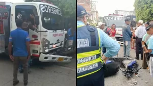 “Recibimos una llamada sobre un incendio estructural para el cual sale el vehículo de emergencias y lamentablemente en el trayecto hacia el evento el vehículo choca con una motocicleta en la cual iban dos ocupantes”, reportó William Esteban Isaza, del cuerpo de bomberos.
