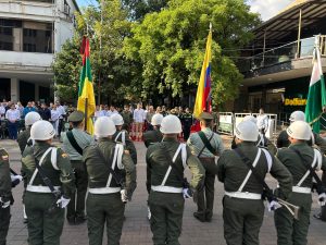 Durante el evento, se entregó el estandarte de la Dirección de Antisecuestro y Antiextorsión al alcalde Germán Casagua Bonilla, como reconocimiento a su gestión y compromiso con la seguridad. “En Neiva no gobernamos con discursos, gobernamos con acciones, con resultados tangibles. Y este GAULA es prueba de ello. Porque dar noticias como la que hoy estamos dando fortalece la confianza ciudadana, respalda al comercio, protege al sector productivo, genera confianza a los inversionistas y brinda tranquilidad a quienes generan empleo, tributan y dinamizan nuestra economía”, aseguró el mandatario local.