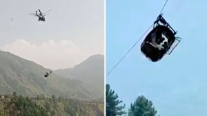 DARING RESCUE: A cable car in Pakistan was left dangling nearly 1,000 feet over a river when one of its mile-long cables broke. Eight people, including six children, had to be rescued. pic.twitter.com/VMmNzVxrmB