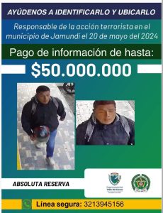 Las autoridades revelaron las características del atacante y ofrecieron una jugosa suma de 50 millones de pesos por información que conduzca al paradero del presunto responsable de dejar la motocicleta cargada de explosivos en el sur del Valle.